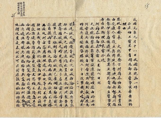國務院(民國01年09月)。[件名:抄送帕王電其中有關外部主管事宜希查照辦理]。《數位典藏與數位學習聯合目錄》。http://catalog.digitalarchives.tw/item/00/0a/38/ee.html(2025/05/20瀏覽)。