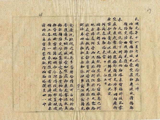 國務院(民國01年11月)。[件名:帕勒塔來電稱科城亂蒙空虛即應進取請飭部預防交涉核辦見復]。《數位典藏與數位學習聯合目錄》。http://catalog.digitalarchives.tw/item/00/0a/38/f7.html(2025/05/20瀏覽)。