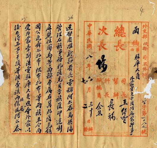 外交部(民國08年07月)。[件名:與外蒙官府交涉不得干涉阿屬蒙部事]。《數位典藏與數位學習聯合目錄》。http://catalog.digitalarchives.tw/item/00/0a/38/fe.html(2025/05/20瀏覽)。