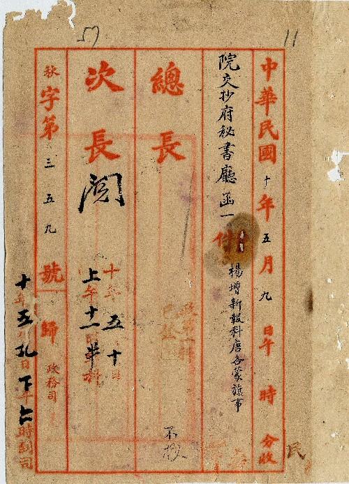 公府秘書廳(民國10年05月)。[件名:楊增新報科唐各蒙旗事]。《數位典藏與數位學習聯合目錄》。http://catalog.digitalarchives.tw/item/00/0a/39/12.html(2025/05/20瀏覽)。