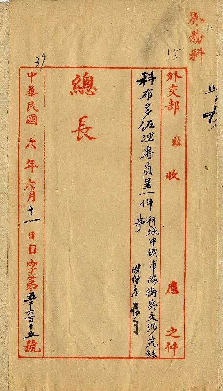 科布多佐理專員(民國06年05月)。[件名:科城中俄衝突交涉完結詳情]。《數位典藏與數位學習聯合目錄》。http://catalog.digitalarchives.tw/item/00/0a/39/2a.html(2025/05/20瀏覽)。