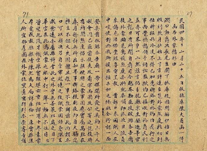 駐庫陳大員(民國04年12月)。[件名:函告外蒙情形]。《數位典藏與數位學習聯合目錄》。http://catalog.digitalarchives.tw/item/00/0a/39/57.html(2025/05/20瀏覽)。