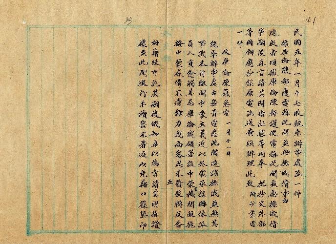 統率辦事處(民國05年01月)。[件名:據庫倫陳都護電稱此間並無排俄情事]。《數位典藏與數位學習聯合目錄》。http://catalog.digitalarchives.tw/item/00/0a/39/5b.html(2025/05/20瀏覽)。