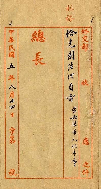 恰克圖佐理員(民國05年08月)。[件名:蒙兵禁華人砍木案]。《數位典藏與數位學習聯合目錄》。http://catalog.digitalarchives.tw/item/00/0a/39/8e.html(2025/05/20瀏覽)。