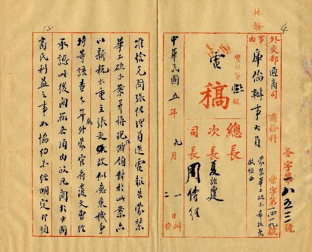 外交部(民國05年09月)。[件名:蒙禁華工砍木希援案駁推由]。《數位典藏與數位學習聯合目錄》。http://catalog.digitalarchives.tw/item/00/0a/39/91.html(2025/05/20瀏覽)。