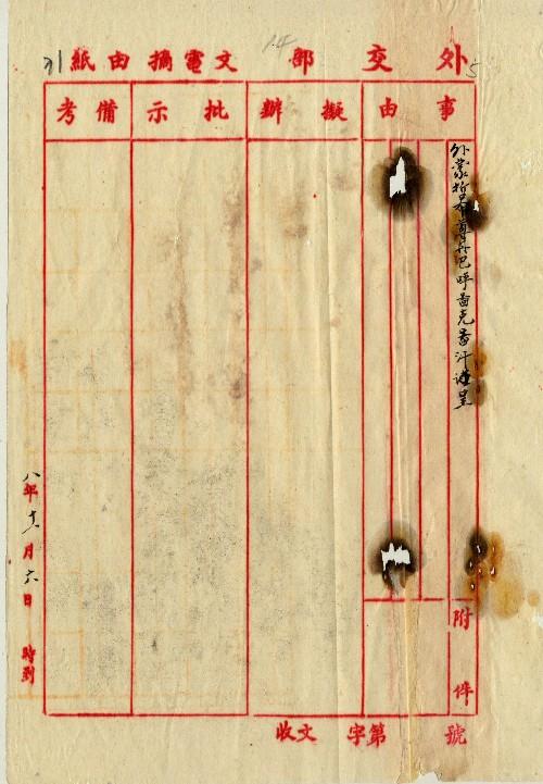 件名:關於取消自治事本旗恐破壞三方協約引起俄害黨懷恨請設法保護
