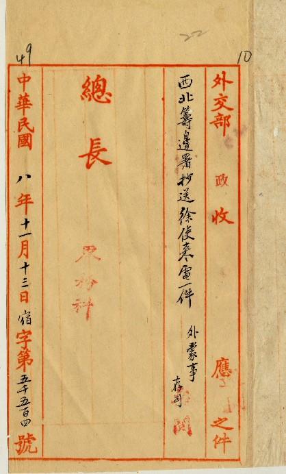 徐使(民國08年11月)。[件名:至都護公使晤陳商酌撤銷條件案之經過]。《數位典藏與數位學習聯合目錄》。http://catalog.digitalarchives.tw/item/00/0a/3a/11.html(2025/05/20瀏覽)。