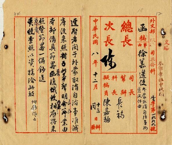 外交部(民國08年12月)。[件名:抄送關於撤治事俄使來照並覆俄使節略]。《數位典藏與數位學習聯合目錄》。http://catalog.digitalarchives.tw/item/00/0a/3a/34.html(2025/05/20瀏覽)。