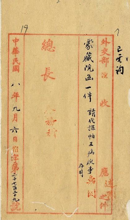 蒙藏院(民國08年09月)。[件名:請探帕王病況]。《數位典藏與數位學習聯合目錄》。http://catalog.digitalarchives.tw/item/00/0a/3a/4e.html(2025/05/20瀏覽)。