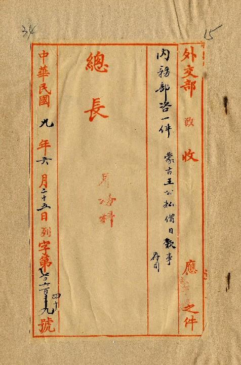 內務部(民國09年06月)。[件名:蒙古王公私借日款事]。《數位典藏與數位學習聯合目錄》。http://catalog.digitalarchives.tw/item/00/0a/3a/ae.html(2025/05/20瀏覽)。