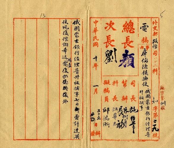 外交部(民國10年01月)。[件名:俄國蒙古銀行經理普升被捕事]。《數位典藏與數位學習聯合目錄》。http://catalog.digitalarchives.tw/item/00/0a/3b/15.html(2025/05/20瀏覽)。