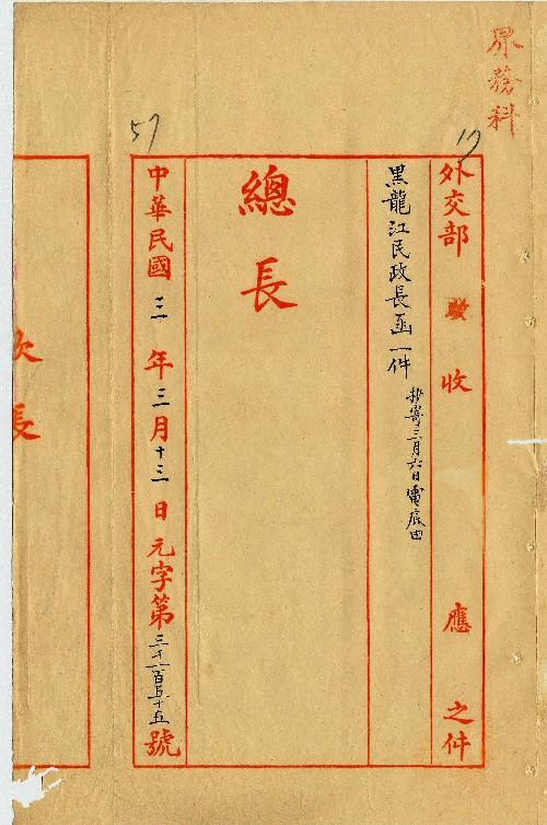 黑龍江民政長(民國03年03月)。[件名:抄寄三月六日電底由]。《數位典藏與數位學習聯合目錄》。http://catalog.digitalarchives.tw/item/00/0a/3b/7d.html(2025/05/20瀏覽)。