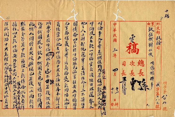 外交部(民國03年04月)。[件名:呼倫條件事]。《數位典藏與數位學習聯合目錄》。http://catalog.digitalarchives.tw/item/00/0a/3b/92.html(2025/05/20瀏覽)。