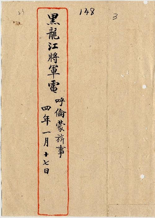 黑龍江將軍(民國04年01月)。[件名:呼倫蒙旂事]。《數位典藏與數位學習聯合目錄》。http://catalog.digitalarchives.tw/item/00/0a/3b/b1.html(2025/05/20瀏覽)。