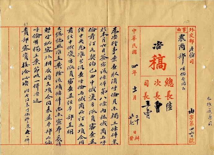 外交部(民國04年11月)。[件名:呼倫合同事]。《數位典藏與數位學習聯合目錄》。http://catalog.digitalarchives.tw/item/00/0a/3c/00.html(2025/05/20瀏覽)。