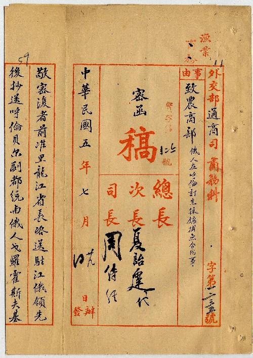 外交部(民國05年07月)。[件名:俄人在呼倫訂立採礦捕魚合同事]。《數位典藏與數位學習聯合目錄》。http://catalog.digitalarchives.tw/item/00/0a/3c/6b.html(2025/05/20瀏覽)。