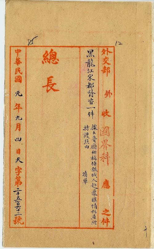 黑龍江宋都督(民國01年08月)。[件名:據大賚廳所稱偵報俄人赴蒙旗情形並所持護照]。《數位典藏與數位學習聯合目錄》。http://catalog.digitalarchives.tw/item/00/0a/3c/8d.html(2025/05/20瀏覽)。