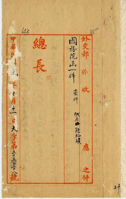 國務院(民國01年10月)。[件名:發下宋都督電抄送查照辦理]。《數位典藏與數位學習聯合目錄》。http://catalog.digitalarchives.tw/item/00/0a/3c/a3.html(2025/05/20瀏覽)。