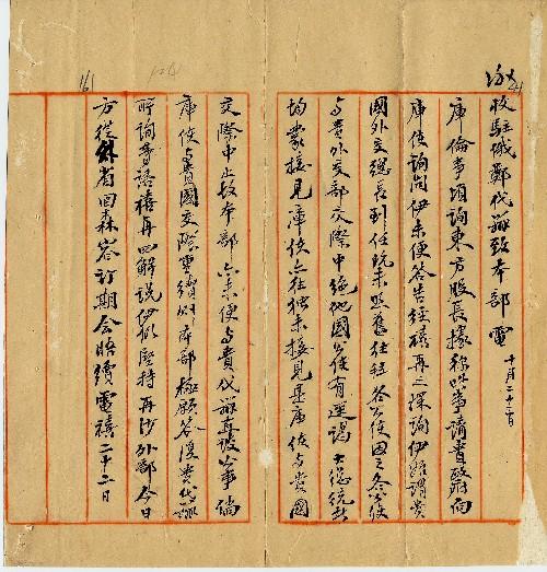 件名:遵詢庫倫事來據答復容續電