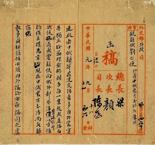 外交部(民國01年11月)。[件名:抄寄中俄蒙古交涉各案]。《數位典藏與數位學習聯合目錄》。http://catalog.digitalarchives.tw/item/00/0a/3c/bc.html(2025/05/20瀏覽)。