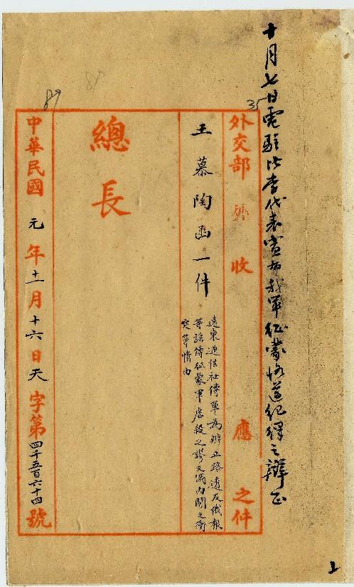 王慕陶(民國01年11月)。[件名:遠東通信社洋文傳單為辦正路透及俄報等謠傳征蒙軍虐殺之謬又俄內閣之衝突情形等情]。《數位典藏與數位學習聯合目錄》。http://catalog.digitalarchives.tw/item/00/0a/3c/d9.html(2025/05/20瀏覽)。