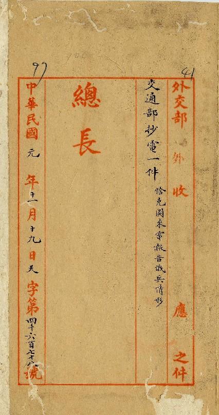 交通部(民國01年11月)。[件名:恰克圖來電報告俄兵情形]。《數位典藏與數位學習聯合目錄》。http://catalog.digitalarchives.tw/item/00/0a/3c/df.html(2025/05/20瀏覽)。