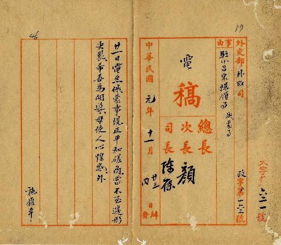外交部(民國01年11月)。[件名:俄蒙事]。《數位典藏與數位學習聯合目錄》。http://catalog.digitalarchives.tw/item/00/0a/3c/fa.html(2025/05/20瀏覽)。