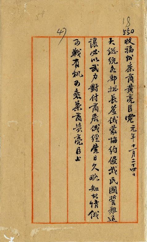 福州茶商黃亮臣(民國01年11月)。[件名:居俄日久頗知俄有可戰之機]。《數位典藏與數位學習聯合目錄》。http://catalog.digitalarchives.tw/item/00/0a/3c/fb.html(2025/05/20瀏覽)。