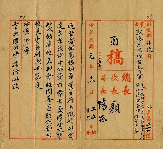 外交部(民國01年11月)。[件名:送中俄對於蒙古交涉始末印刷成冊請查照]。《數位典藏與數位學習聯合目錄》。http://catalog.digitalarchives.tw/item/00/0a/3d/06.html(2025/05/20瀏覽)。