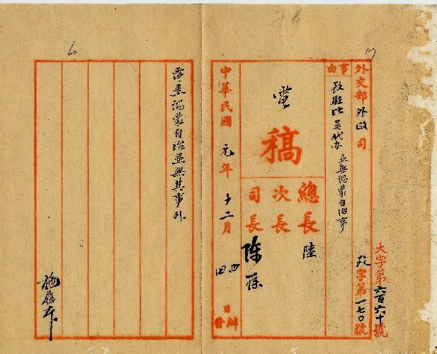 外交部(民國01年12月)。[件名:並無認蒙自治事]。《數位典藏與數位學習聯合目錄》。http://catalog.digitalarchives.tw/item/00/0a/3d/23.html(2025/05/20瀏覽)。