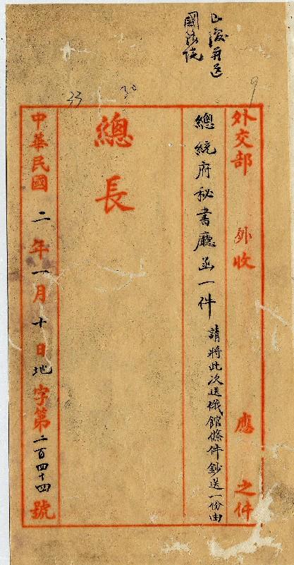 府秘書廳(民國02年01月)。[件名:請將此次送俄館條件鈔送一份]。《數位典藏與數位學習聯合目錄》。http://catalog.digitalarchives.tw/item/00/0a/3d/57.html(2025/05/20瀏覽)。