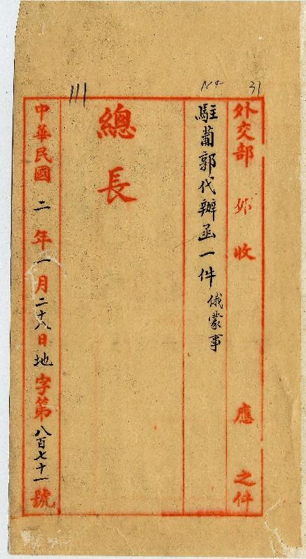 駐葡郭代辦(民國01年12月)。[件名:函復面詢外部俄蒙事情形]。《數位典藏與數位學習聯合目錄》。http://catalog.digitalarchives.tw/item/00/0a/3d/6c.html(2025/05/20瀏覽)。