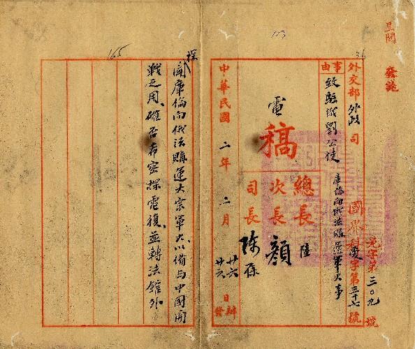 外交部(民國02年02月)。[件名:庫倫向俄法購運軍火希密探電復]。《數位典藏與數位學習聯合目錄》。http://catalog.digitalarchives.tw/item/00/0a/3d/92.html(2025/05/20瀏覽)。