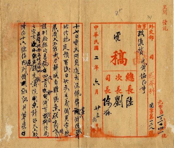 件名:中俄協約事政府向俄要求修改現尚未復