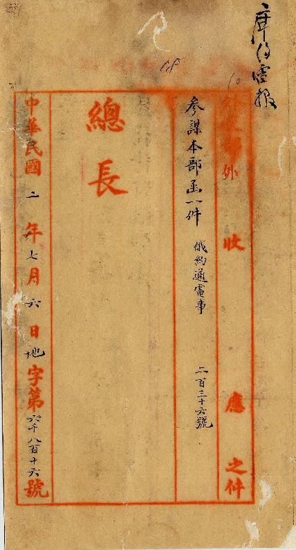 參謀本部(民國02年07月)。[件名:俄約事函送通電抄稿並希將關於條約最近情況隨時詳示]。《數位典藏與數位學習聯合目錄》。http://catalog.digitalarchives.tw/item/00/0a/3d/fd.html(2025/05/20瀏覽)。