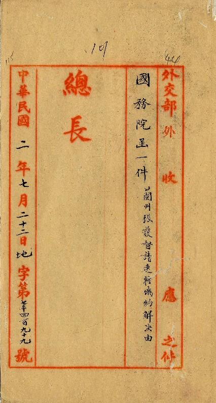 國務院(民國02年07月)。[件名:蘭州張護督請速將俄約解決函知查照辦理]。《數位典藏與數位學習聯合目錄》。http://catalog.digitalarchives.tw/item/00/0a/3e/1f.html(2025/05/20瀏覽)。