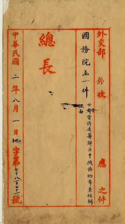 國務院(民國02年08月)。[件名:甘督電請速籌解決中俄協約希查核辦理]。《數位典藏與數位學習聯合目錄》。http://catalog.digitalarchives.tw/item/00/0a/3e/2e.html(2025/05/20瀏覽)。