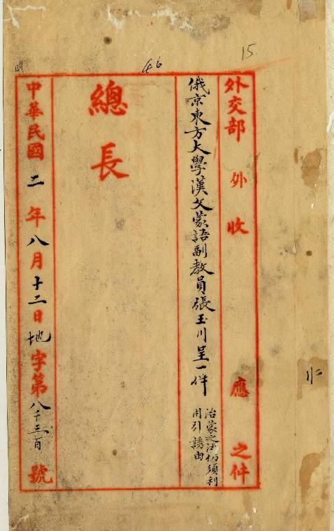 俄京東方大學漢文蒙語副教員張玉川(民國02年08月)。[件名:治蒙之法仍須利用引誘]。《數位典藏與數位學習聯合目錄》。http://catalog.digitalarchives.tw/item/00/0a/3e/3c.html(2025/05/20瀏覽)。