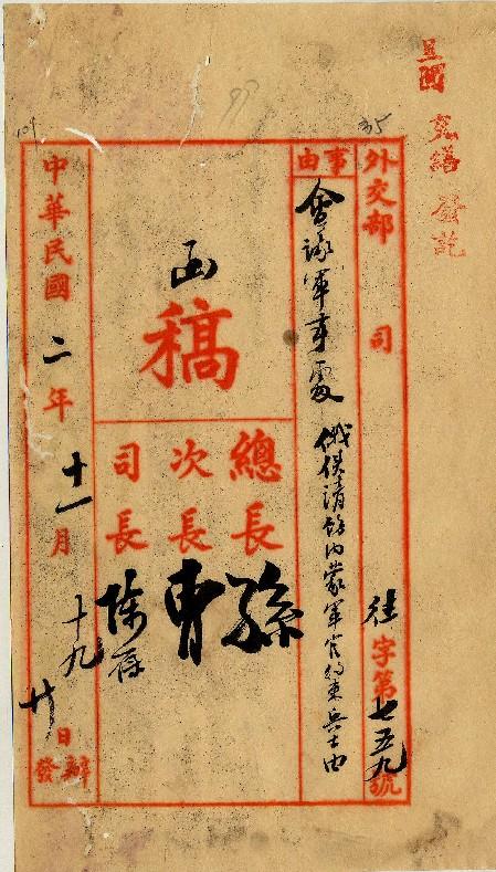 外交部(民國02年11月)。[件名:俄使請飭內蒙軍官約束兵士]。《數位典藏與數位學習聯合目錄》。http://catalog.digitalarchives.tw/item/00/0a/3e/95.html(2025/05/20瀏覽)。