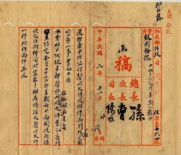 外交部(民國02年11月)。[件名:中俄聲明文件希轉飭登公報]。《數位典藏與數位學習聯合目錄》。http://catalog.digitalarchives.tw/item/00/0a/3e/96.html(2025/05/20瀏覽)。