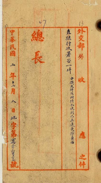直隸行政署(民國02年12月)。[件名:中俄文件及附件已收到已函達交涉員]。《數位典藏與數位學習聯合目錄》。http://catalog.digitalarchives.tw/item/00/0a/3e/b6.html(2025/05/20瀏覽)。