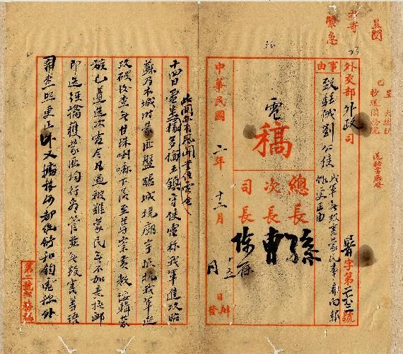 外交部(民國02年12月)。[件名:我軍無殺害蒙民事希向報館更正]。《數位典藏與數位學習聯合目錄》。http://catalog.digitalarchives.tw/item/00/0a/3e/c0.html(2025/05/20瀏覽)。