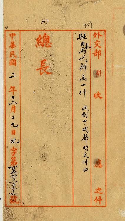 駐日本馬代辦(民國02年12月)。[件名:收到中俄聲明文件]。《數位典藏與數位學習聯合目錄》。http://catalog.digitalarchives.tw/item/00/0a/3e/c4.html(2025/05/20瀏覽)。