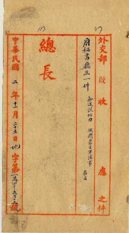府秘書廳(民國02年12月)。[件名:俄國蒙古軍隊情形]。《數位典藏與數位學習聯合目錄》。http://catalog.digitalarchives.tw/item/00/0a/3e/d8.html(2025/05/20瀏覽)。
