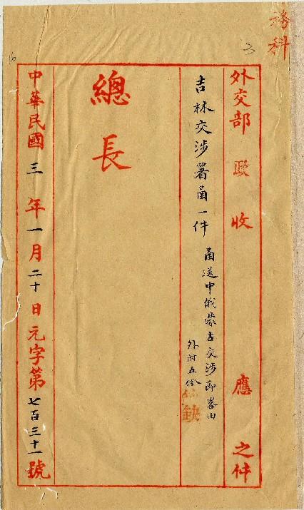 吉林交涉署(民國03年01月)。[件名:函送中俄蒙交涉節略]。《數位典藏與數位學習聯合目錄》。http://catalog.digitalarchives.tw/item/00/0a/3e/e5.html(2025/05/20瀏覽)。