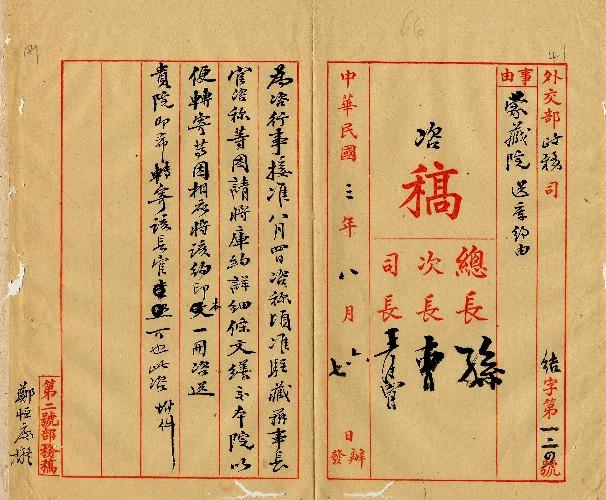 外交部(民國03年08月)。[件名:咨送庫約印本1冊希轉寄駐藏辦事長官]。《數位典藏與數位學習聯合目錄》。http://catalog.digitalarchives.tw/item/00/0a/3f/08.html(2025/05/20瀏覽)。