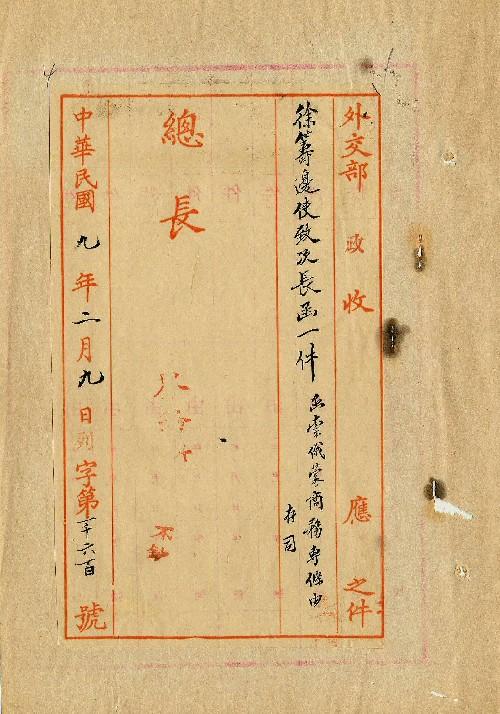 徐籌邊使(民國09年02月)。[件名:函索俄蒙商務專條及中俄聲明庫事文件抄件]。《數位典藏與數位學習聯合目錄》。http://catalog.digitalarchives.tw/item/00/0a/3f/61.html(2025/05/20瀏覽)。