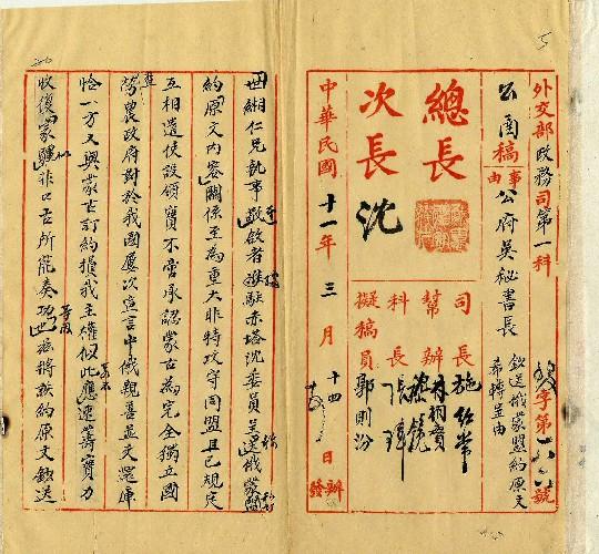 外交部(民國11年03月)。[件名:抄送俄蒙條約全文請轉呈]。《數位典藏與數位學習聯合目錄》。http://catalog.digitalarchives.tw/item/00/0a/3f/65.html(2025/05/20瀏覽)。