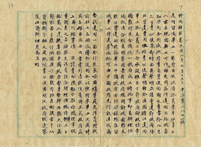 外交部(民國08年09月)。[件名:遣回留俄華工案可否由庚子賠款內酌提歸墊由]。《數位典藏與數位學習聯合目錄》。http://catalog.digitalarchives.tw/item/00/0a/a0/54.html(2025/05/20瀏覽)。