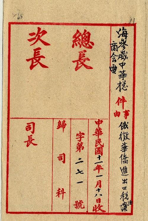 海參崴中華總商會(民國11年01月)。[件名:俄徵華僑進出口稅]。《數位典藏與數位學習聯合目錄》。http://catalog.digitalarchives.tw/item/00/0a/a7/16.html(2025/05/20瀏覽)。